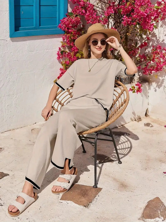Women's Cord-set Beige And Black Relaxed fit Trendy Fashion for Office and Casual Wear