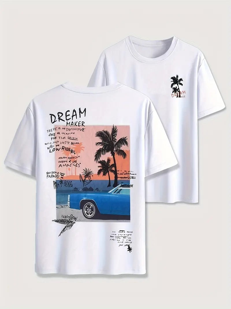 Los Angeles Beach Graphic Printed Oversized White Cotton T-shirt